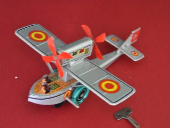 • ANCIEN JOUET EN TOLE AVION A HELICE MECANIQUE