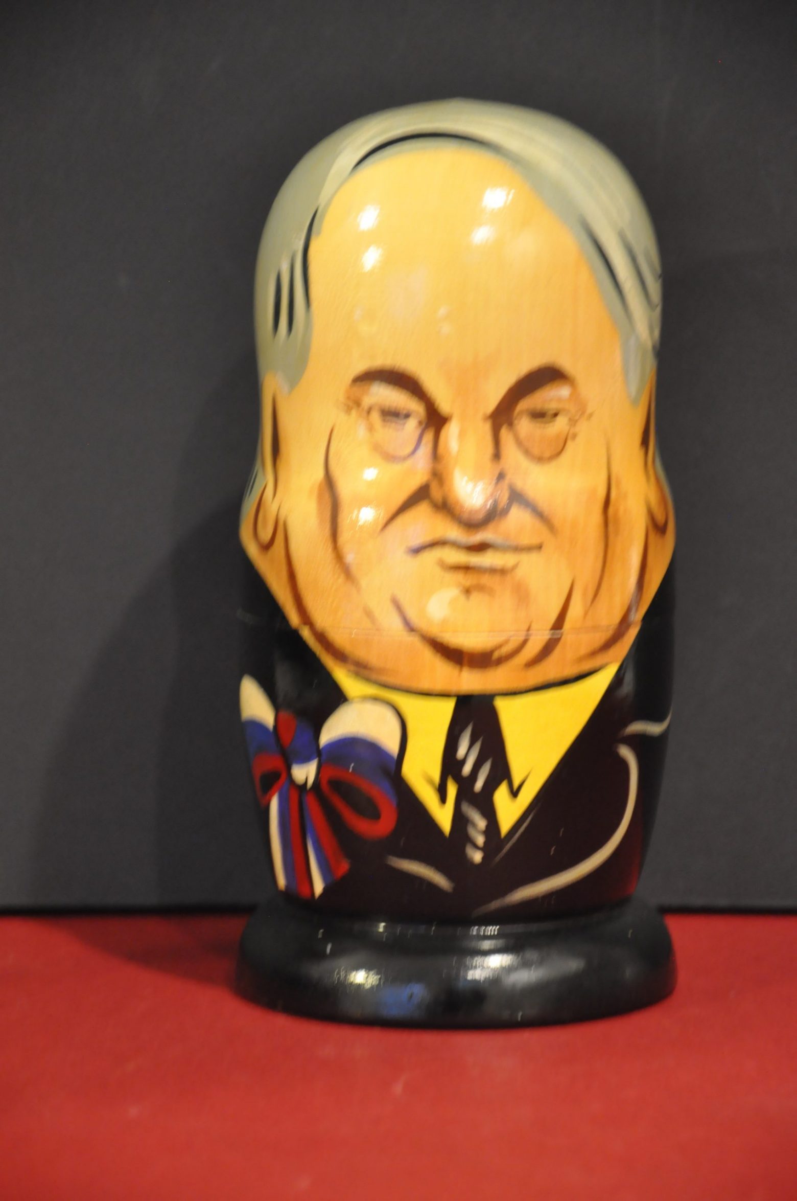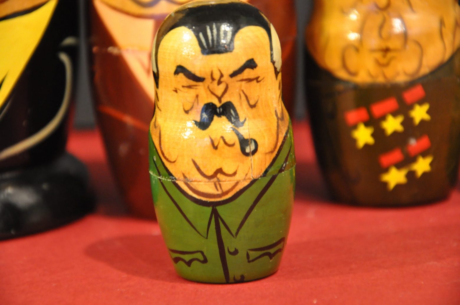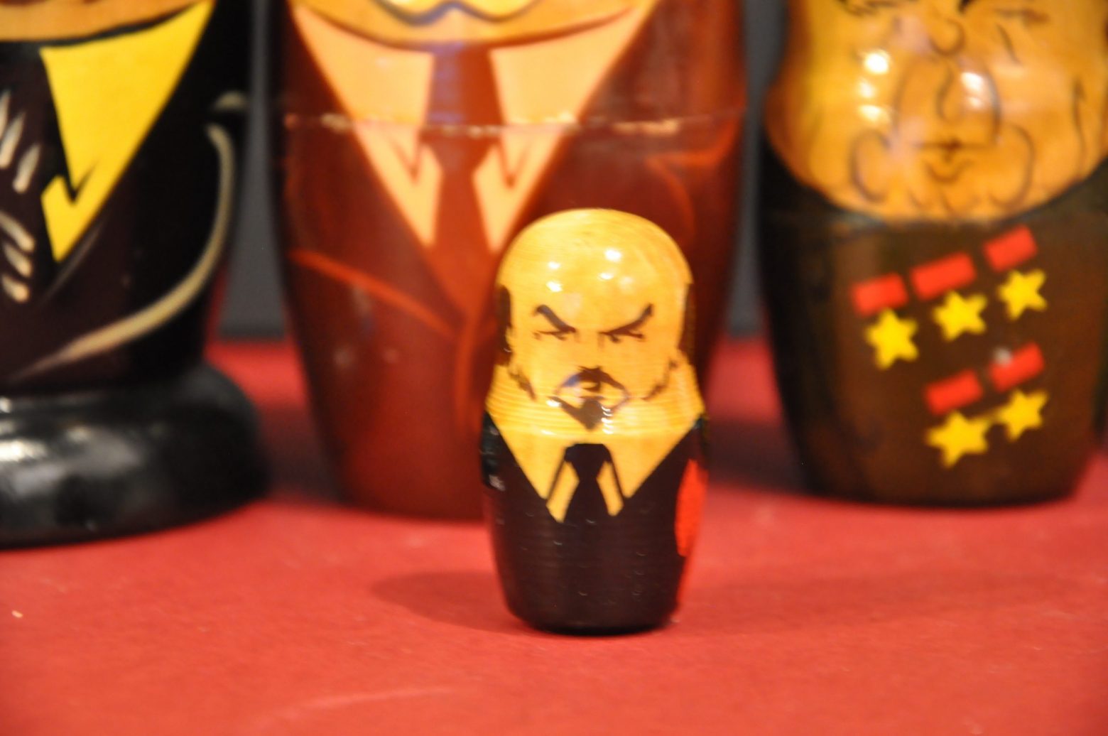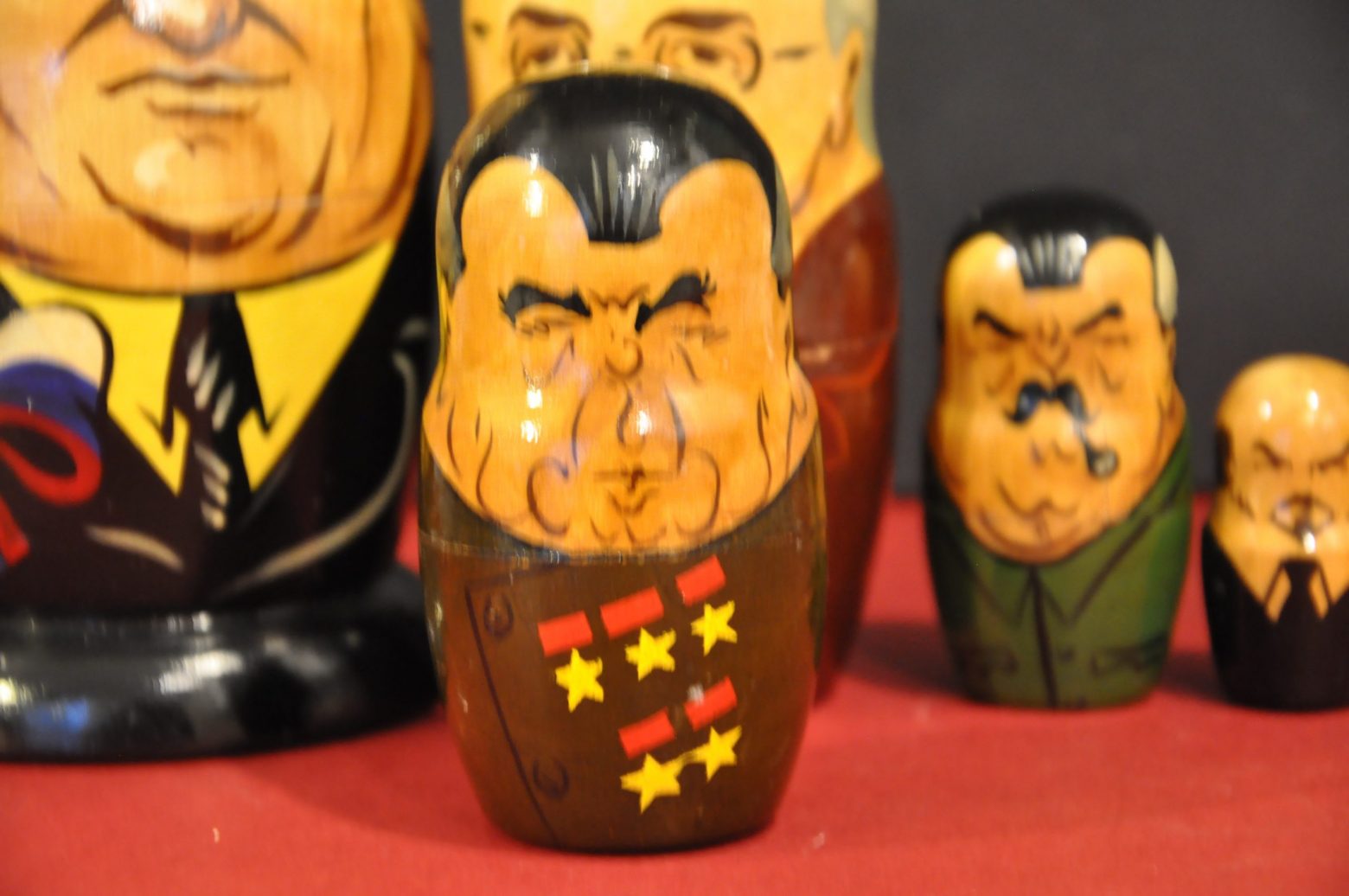 Ensemble de matriochkas représentant des personnalités politiques emblématiques du XXème siècle.