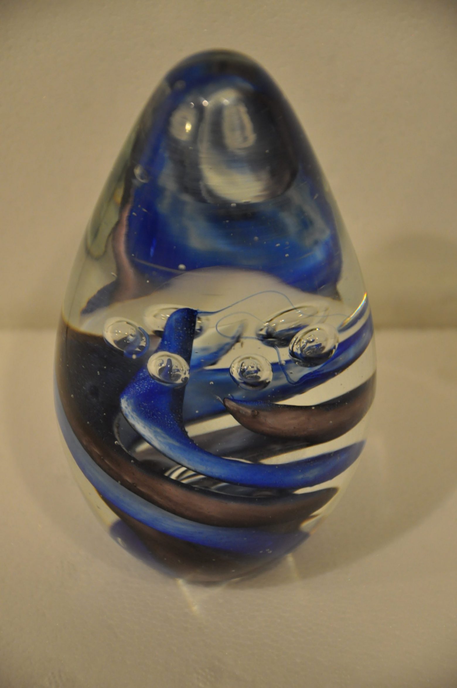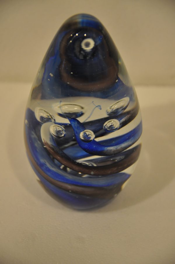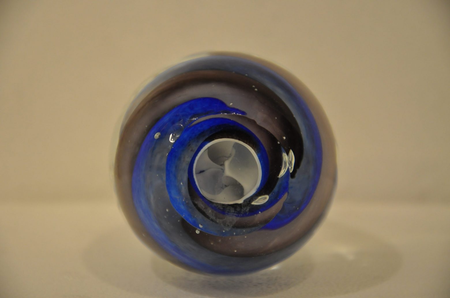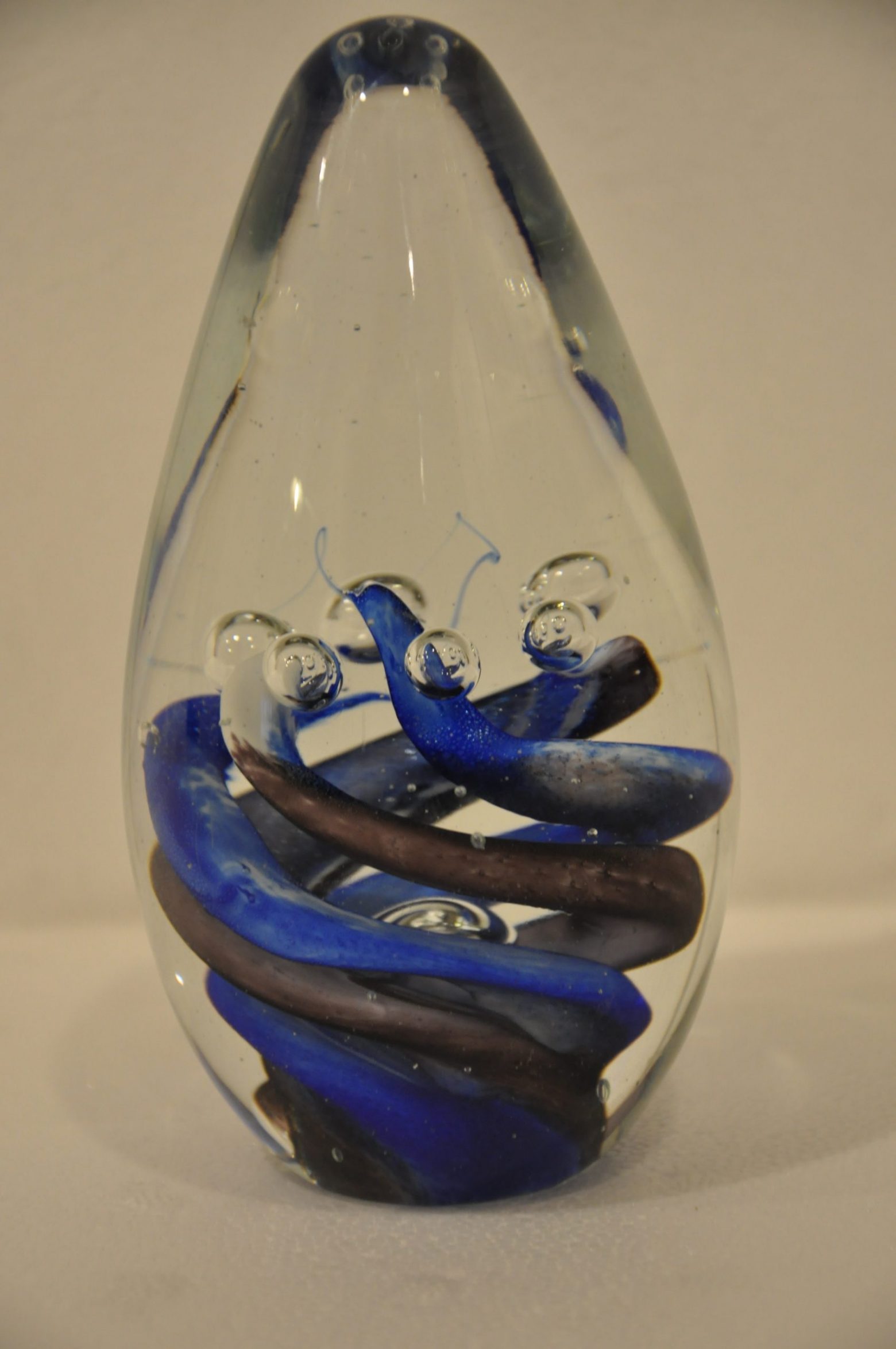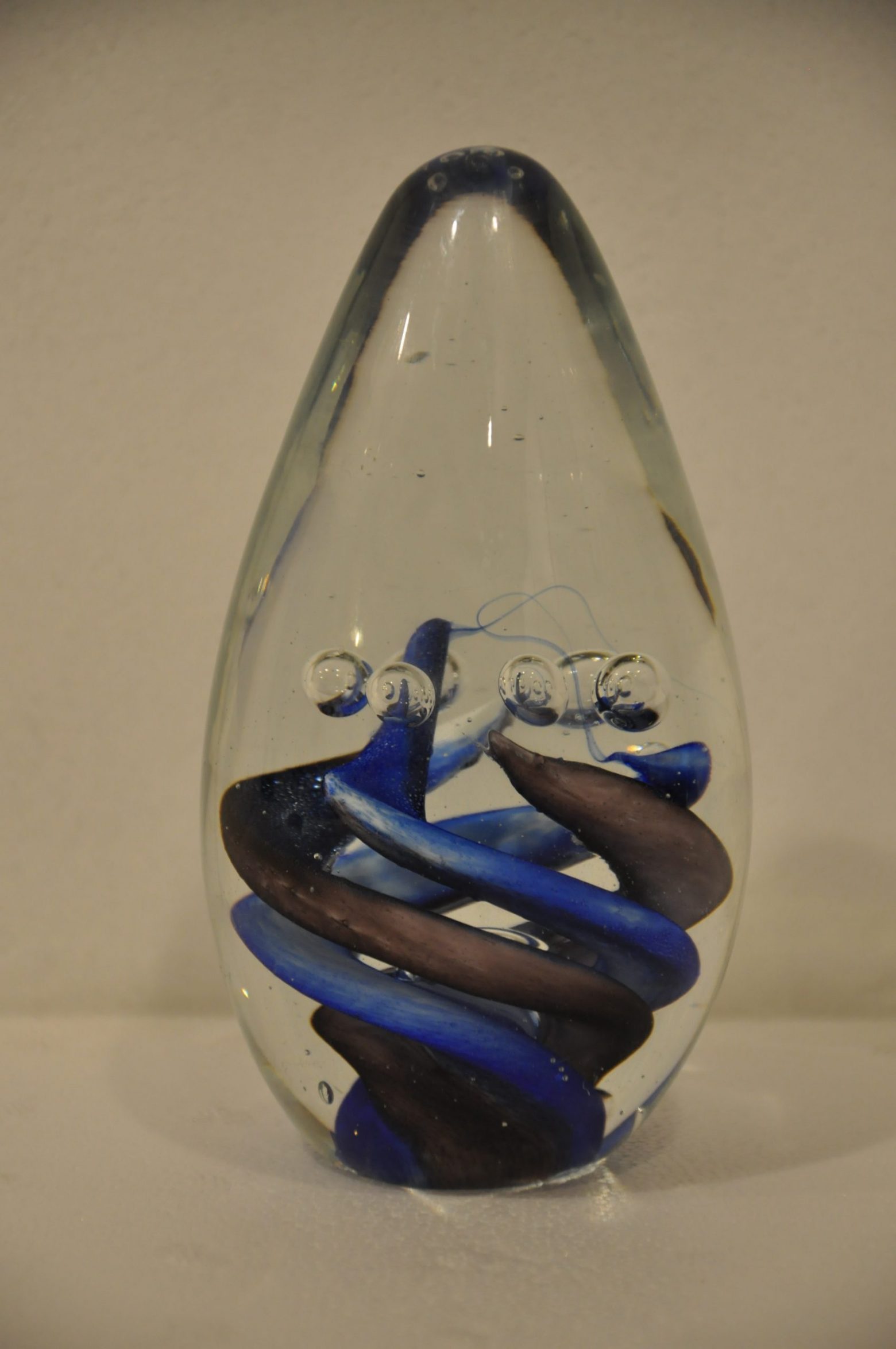 ✨La spirale bleue et blanche enchâssée, associée aux bulles d’air, dans une masse de verre transparent, crée un effet de mouvement et de profondeur saisissant. ✨
