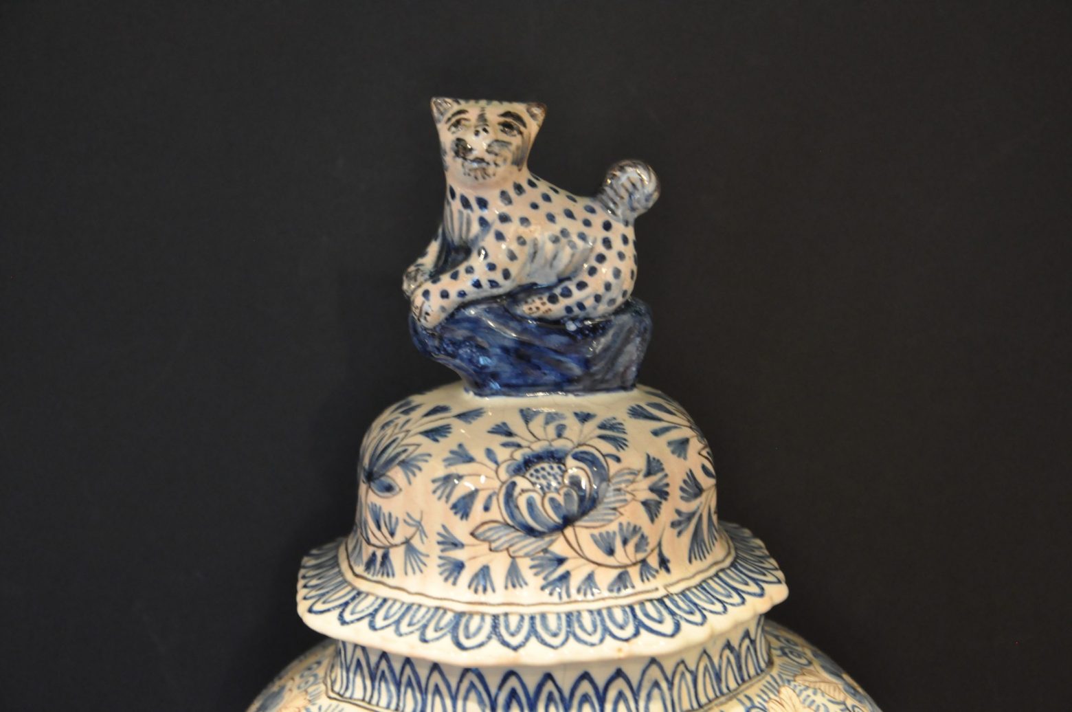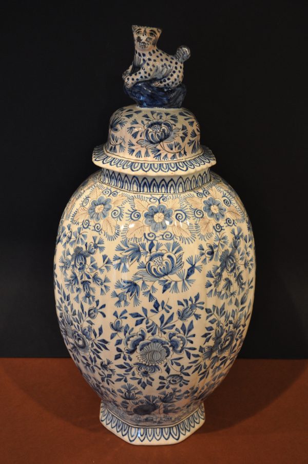 Ancienne grande potiche avec prise sur le couvercle en forme d’animal (Léopard ?)