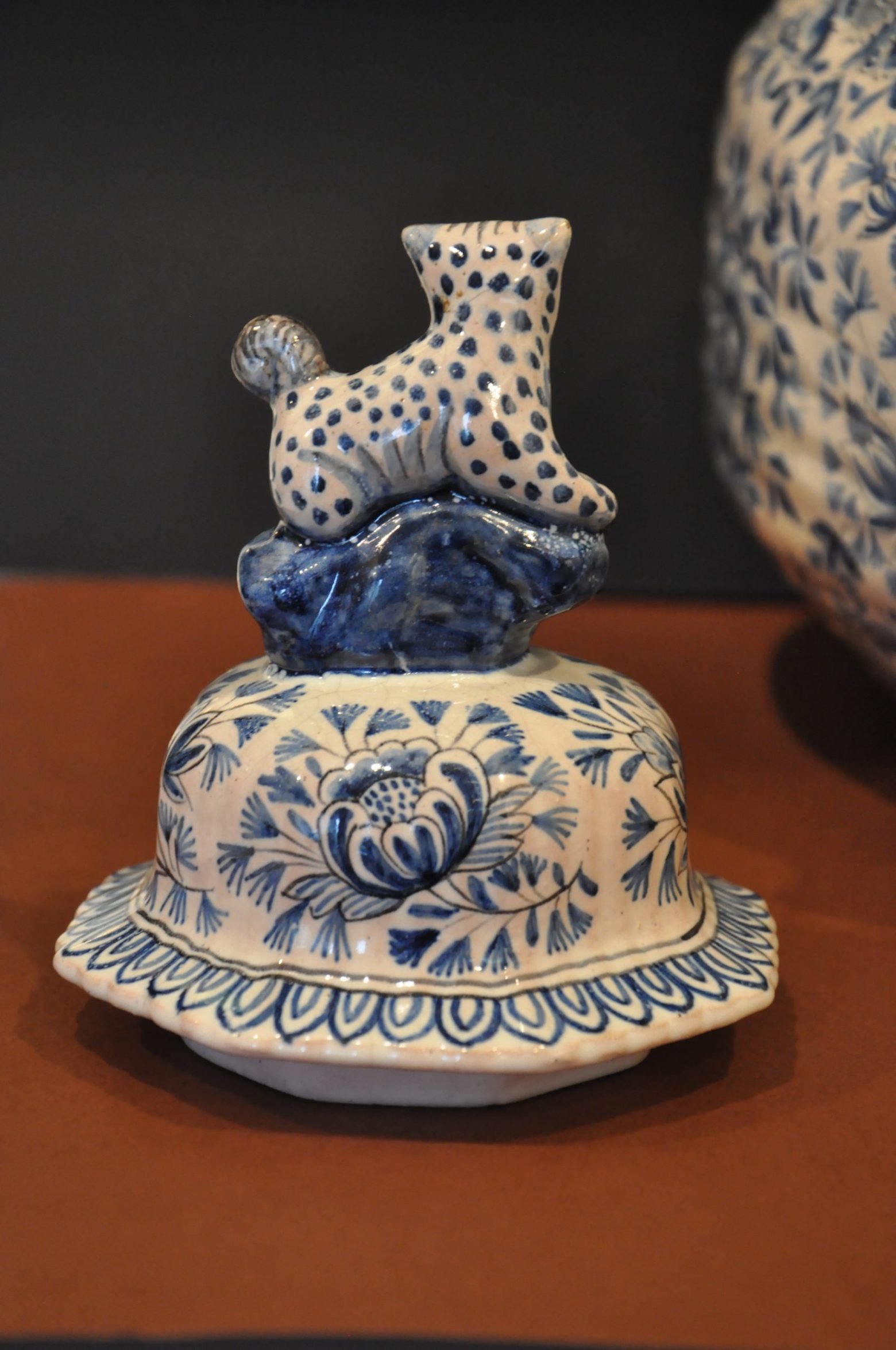 Très logiquement, les premières pièces produites furent décorées de bleu à décor d’animaux ,de végétaux ou d’oiseaux d’orient et d’Asie . Ces faïences de Delft (blanches à décor bleu) connues et réputées dans le monde entier sont appelées « Bleu de Delft ».