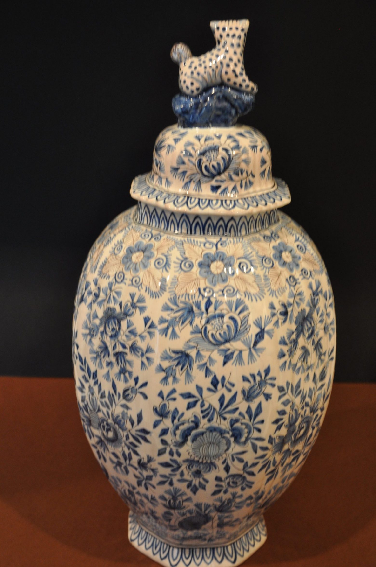 L’essor du commerce avec l’Extrême-Orient, notamment grâce à la fondation vers 1600 de la Compagnie néerlandaise des indes orientales , permit l’arrivée de pièces éblouissants en porcelaine d’Asie vers Europe. Pour les potiers de Delft , ce fut une véritable source de découverte et d’inspiration . Lorsque, en 1647, de violents troubles politiques en Chine interrompirent le commerce de la Compagnie, les faïenciers de Delft étaient alors à l’apogée de leur art ! leurs œuvres firent alors le plaisir décoratif des riches familles d’Europe