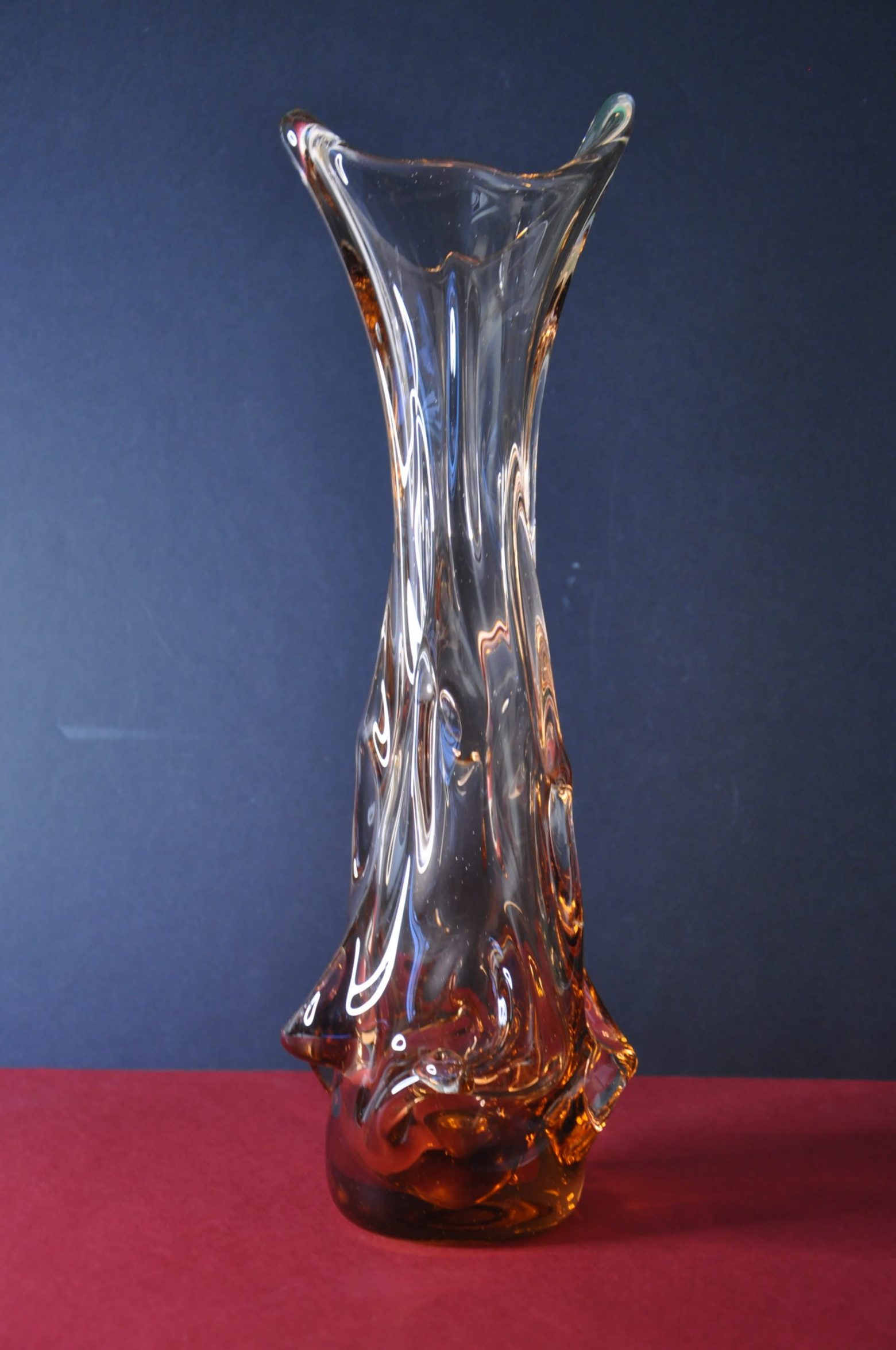 Magnifique vase en verre de dépression, originaire de Bohème (Tchécoslovaquie), des années 60