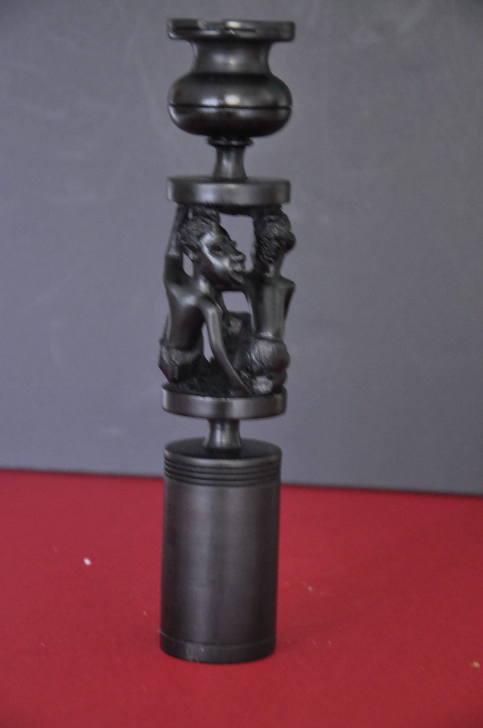 ANCIEN BOUGEOIR EN BOIS D’EBENE SCULPTE