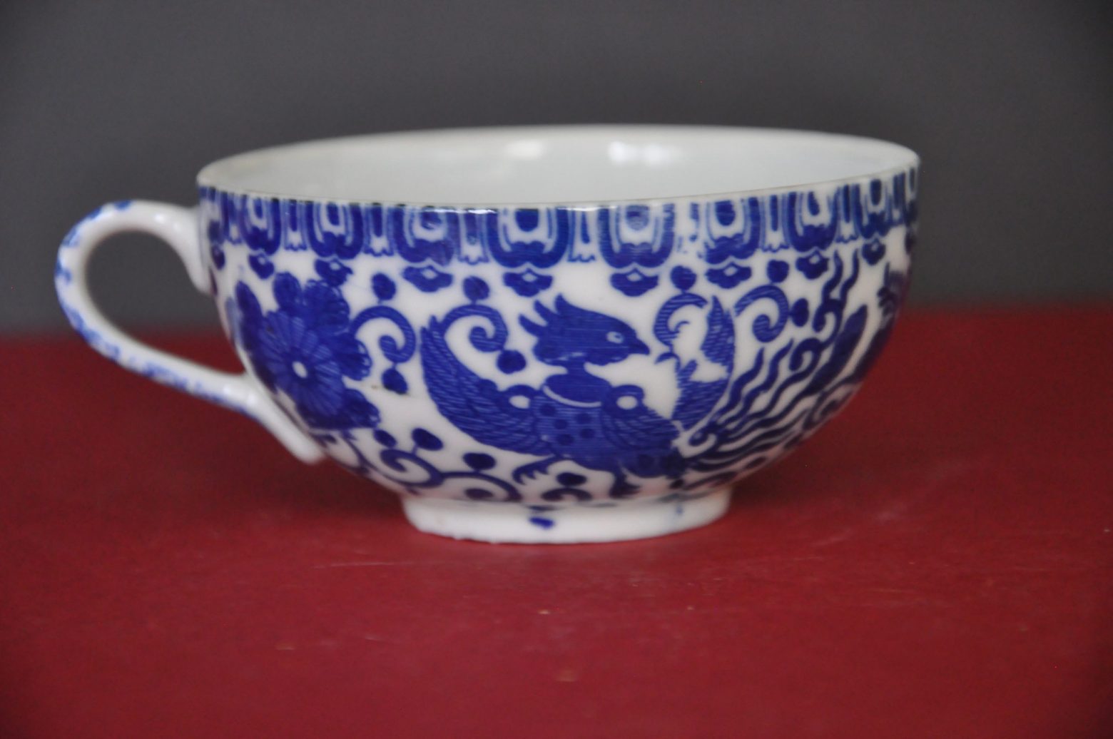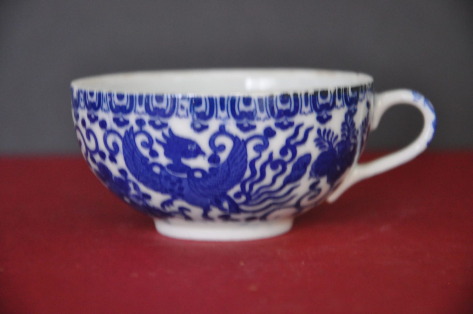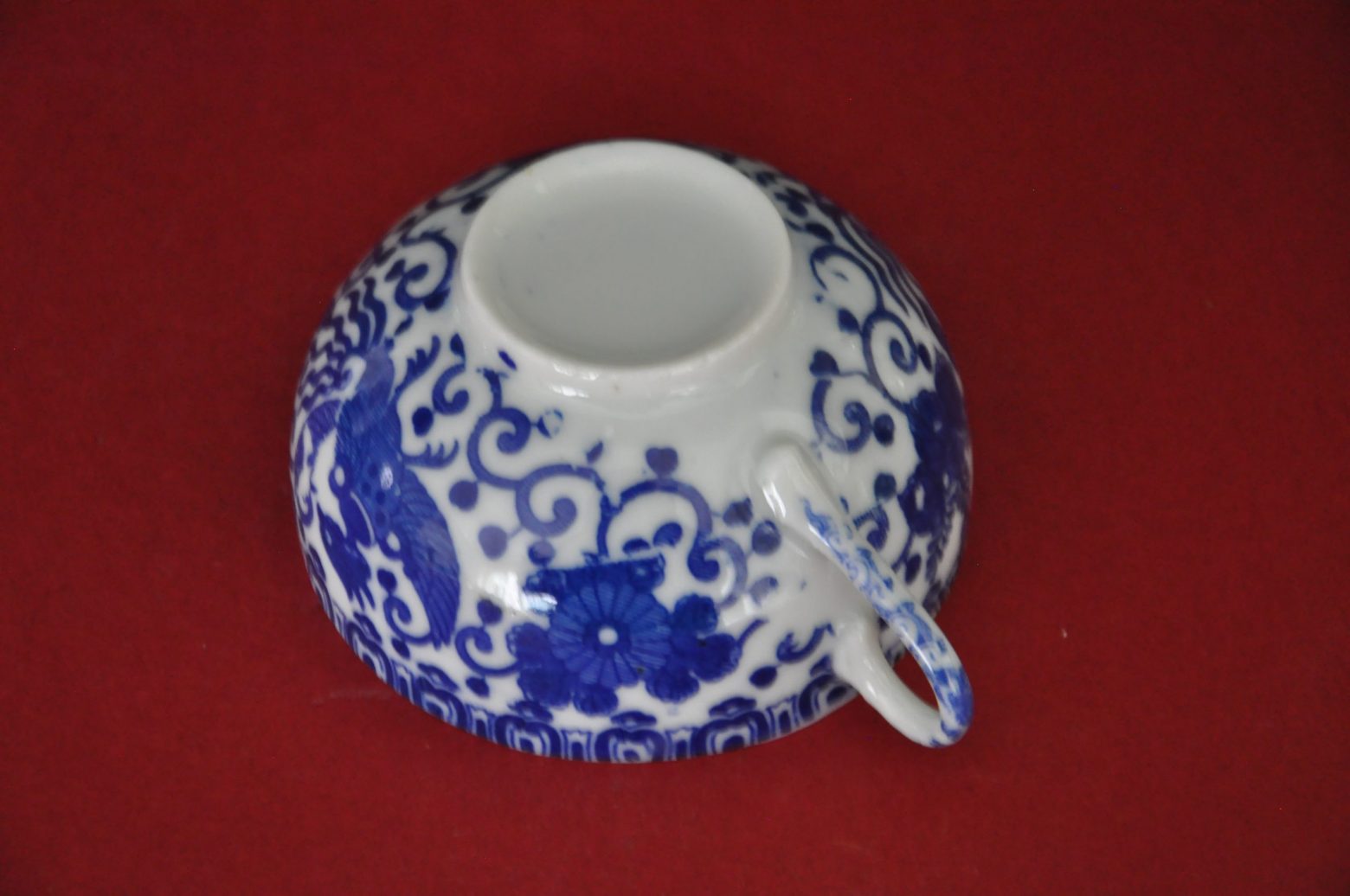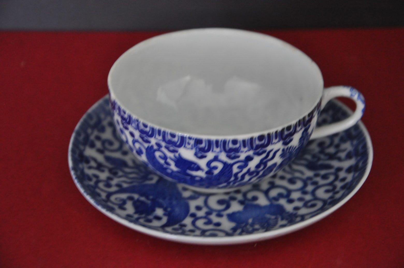 Cette tasse et sous-tasse en porcelaine, ornées d’un décor de phénix élégant et peintes en blanc et bleu, sont idéales pour les collectionneurs d’objets anciens ou les amateurs de porcelaine chinoise. La signature sous la sous-tasse ajoute une touche d’authenticité et de valeur à cet ensemble unique.