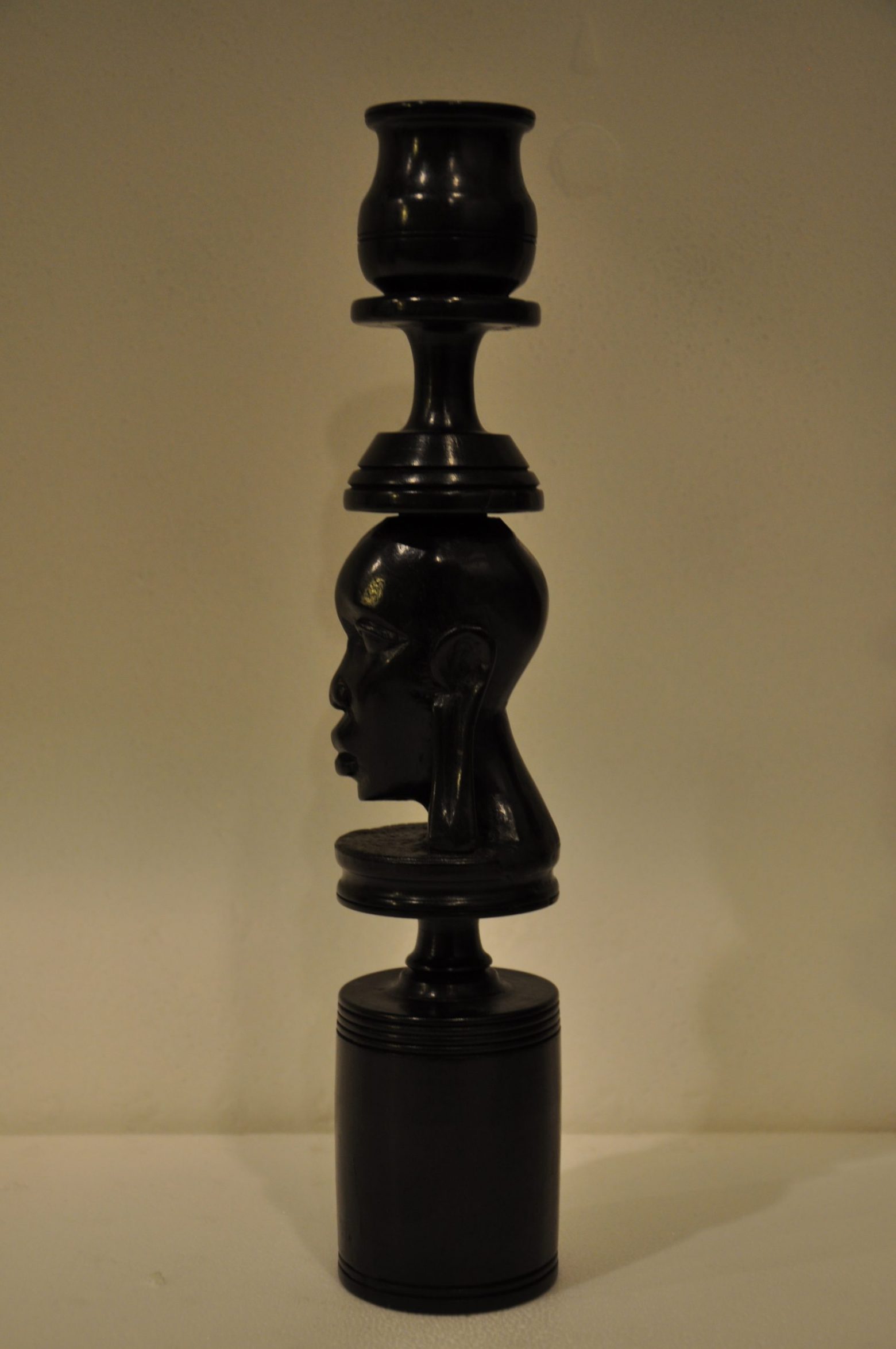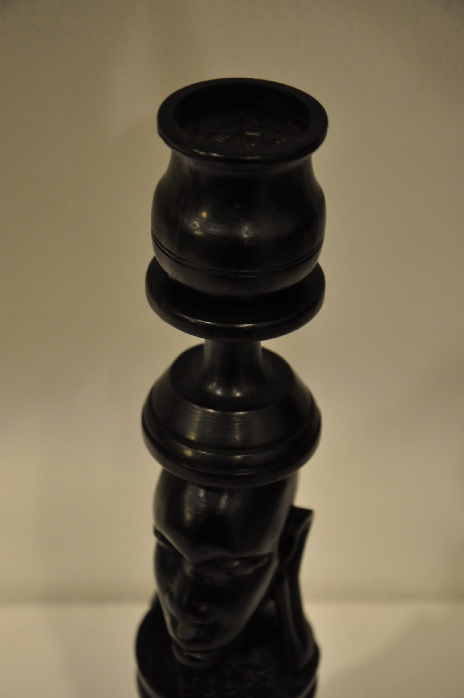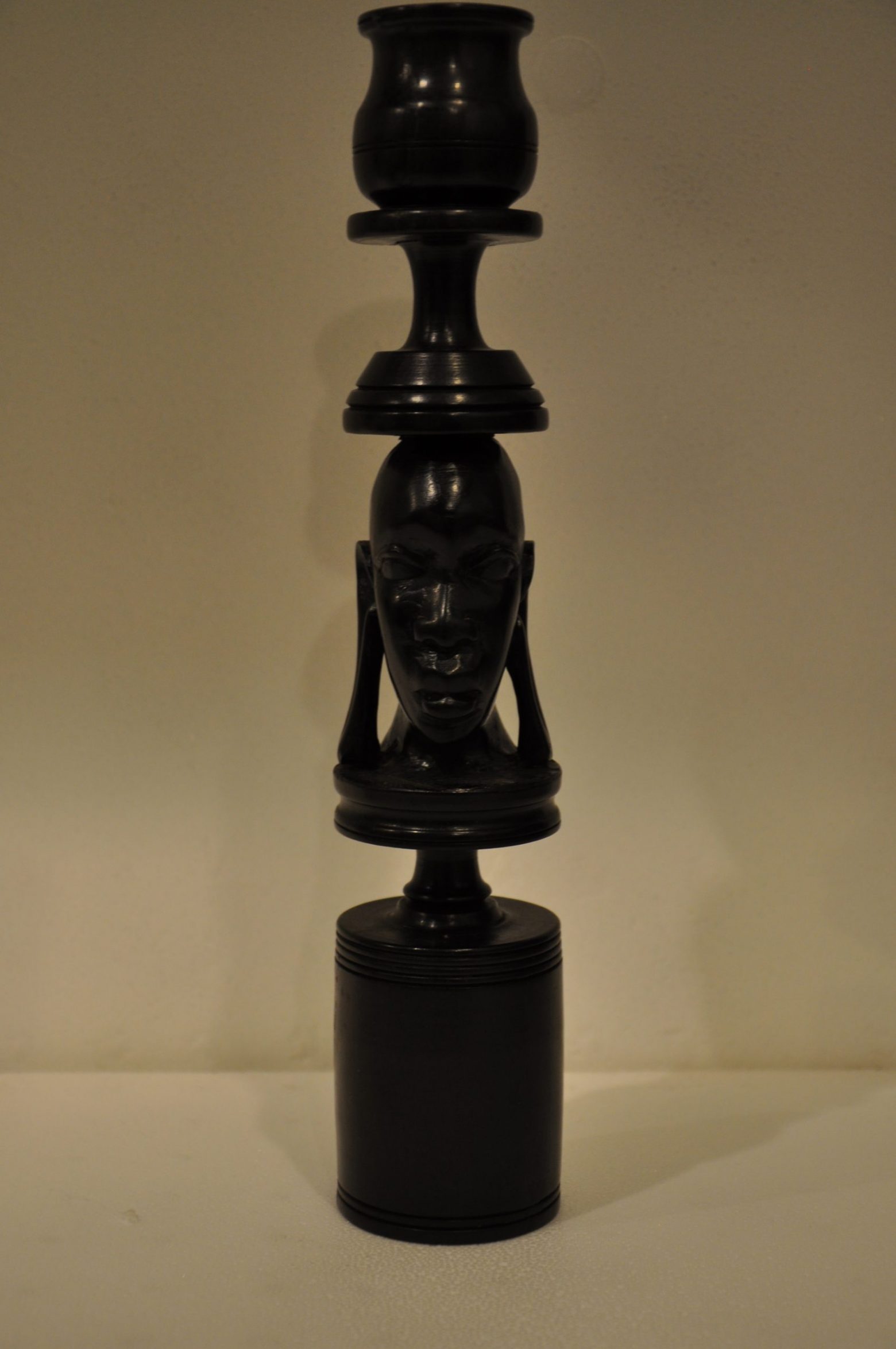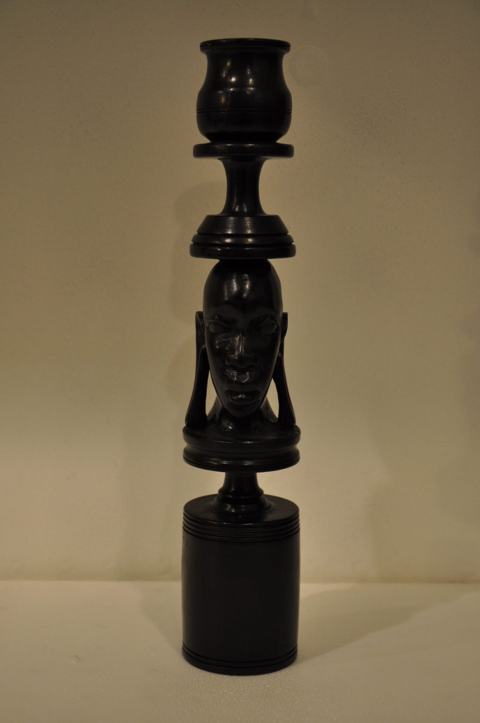Magnifique bougeoir africain en bois d’ébène, sculpté à la main.