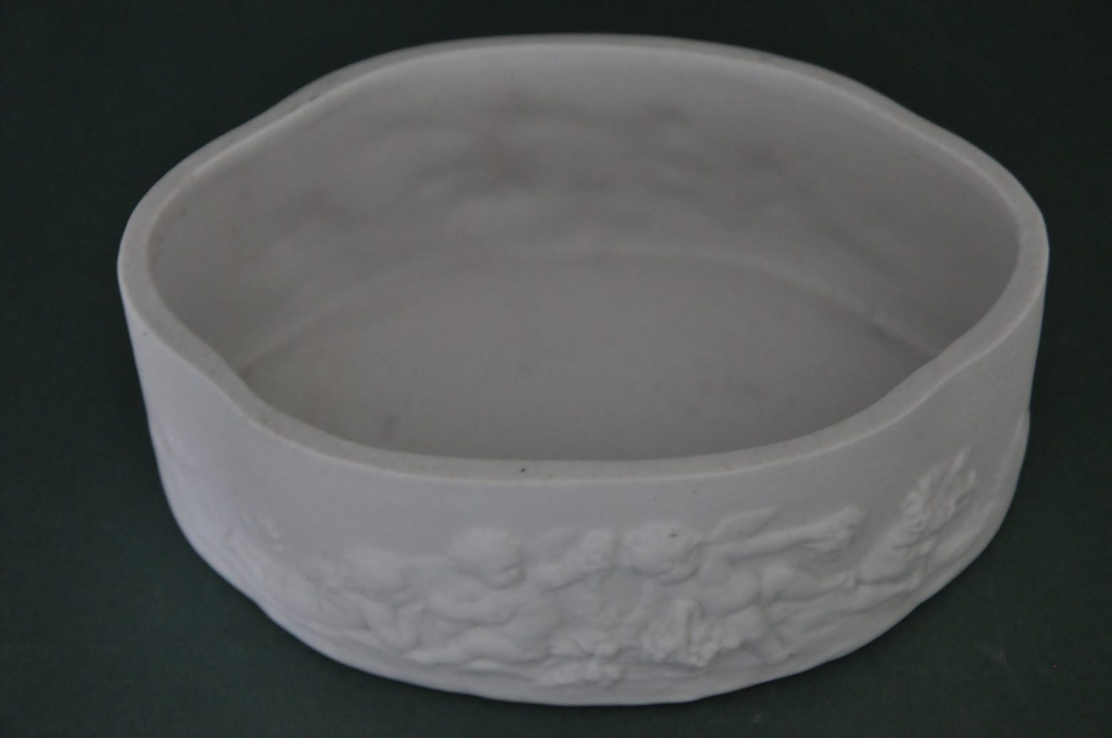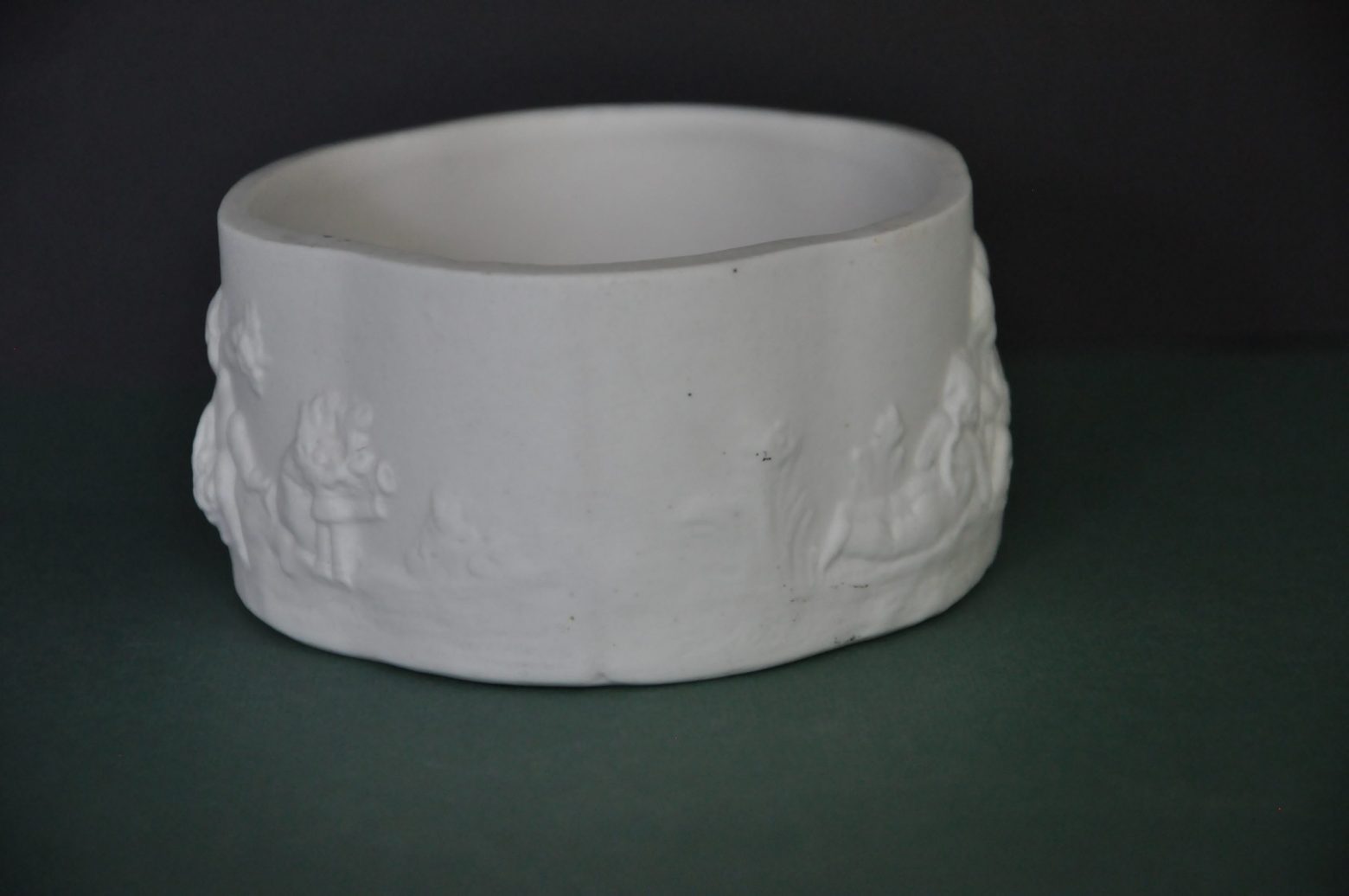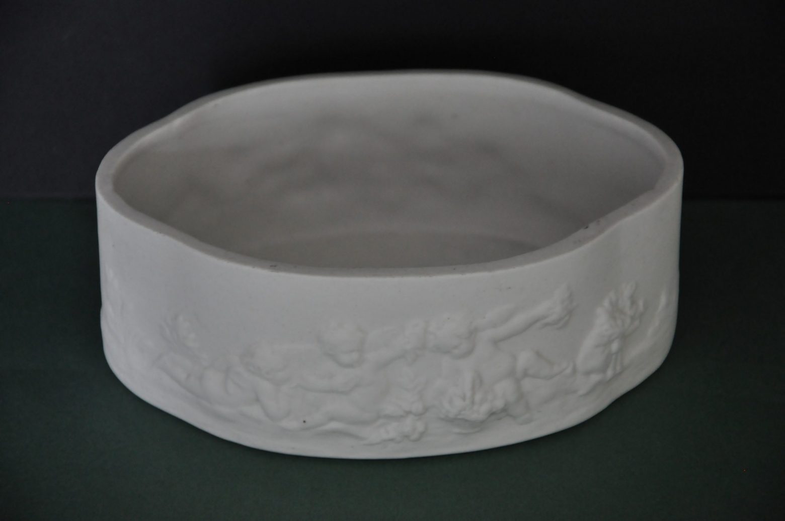 Superbe jardinière en biscuit de porcelaine, ornée de motifs délicats d’angelots ou de putti.