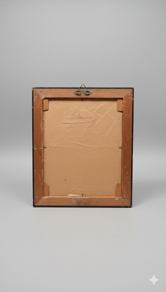 Le cadre en bois foncé met élégamment en valeur la marqueterie, prête à embellir votre intérieur ou à enrichir une collection.