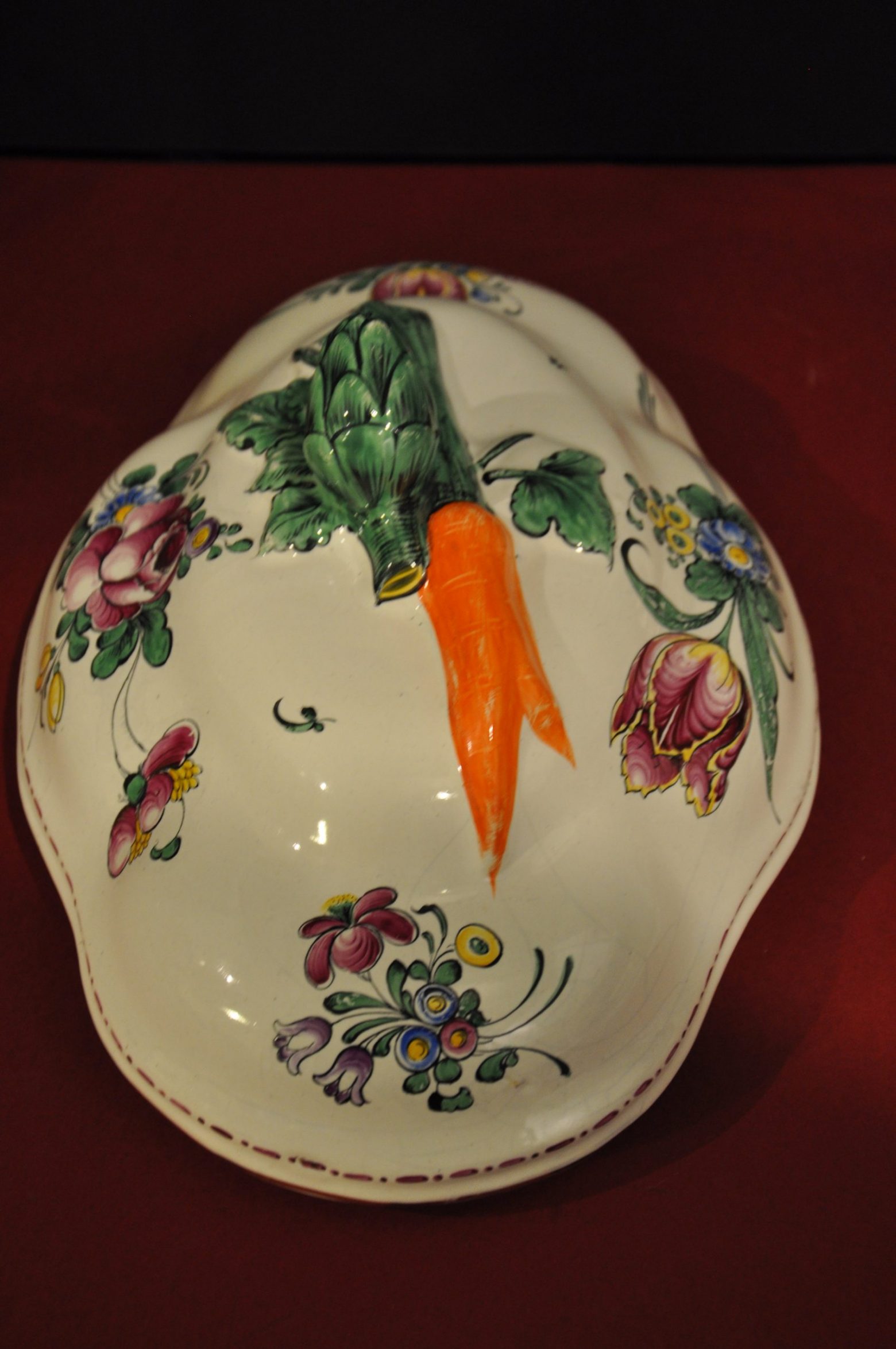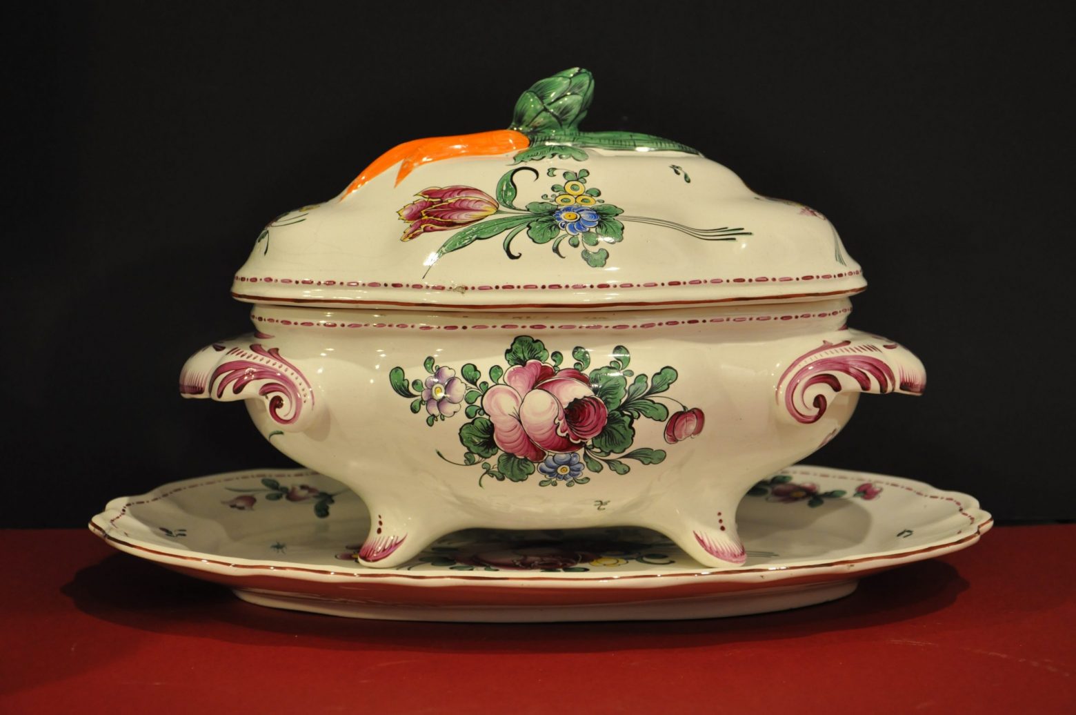 Grand légumier ou soupière sur plat présentoir en faïence de l’Est de la France