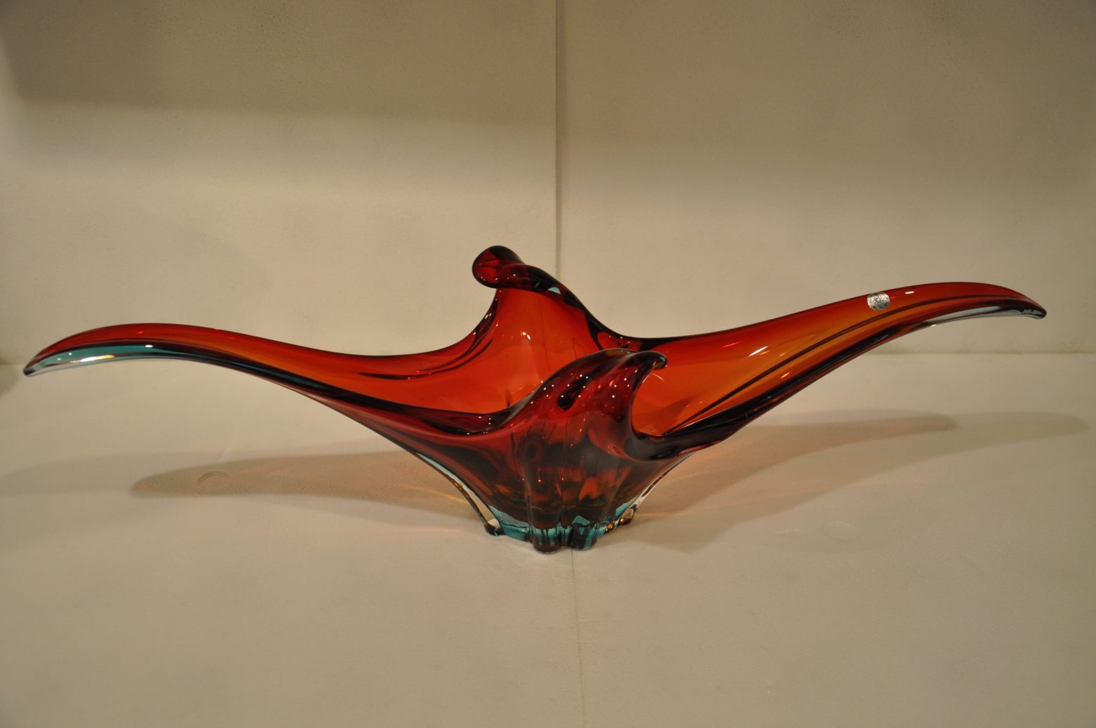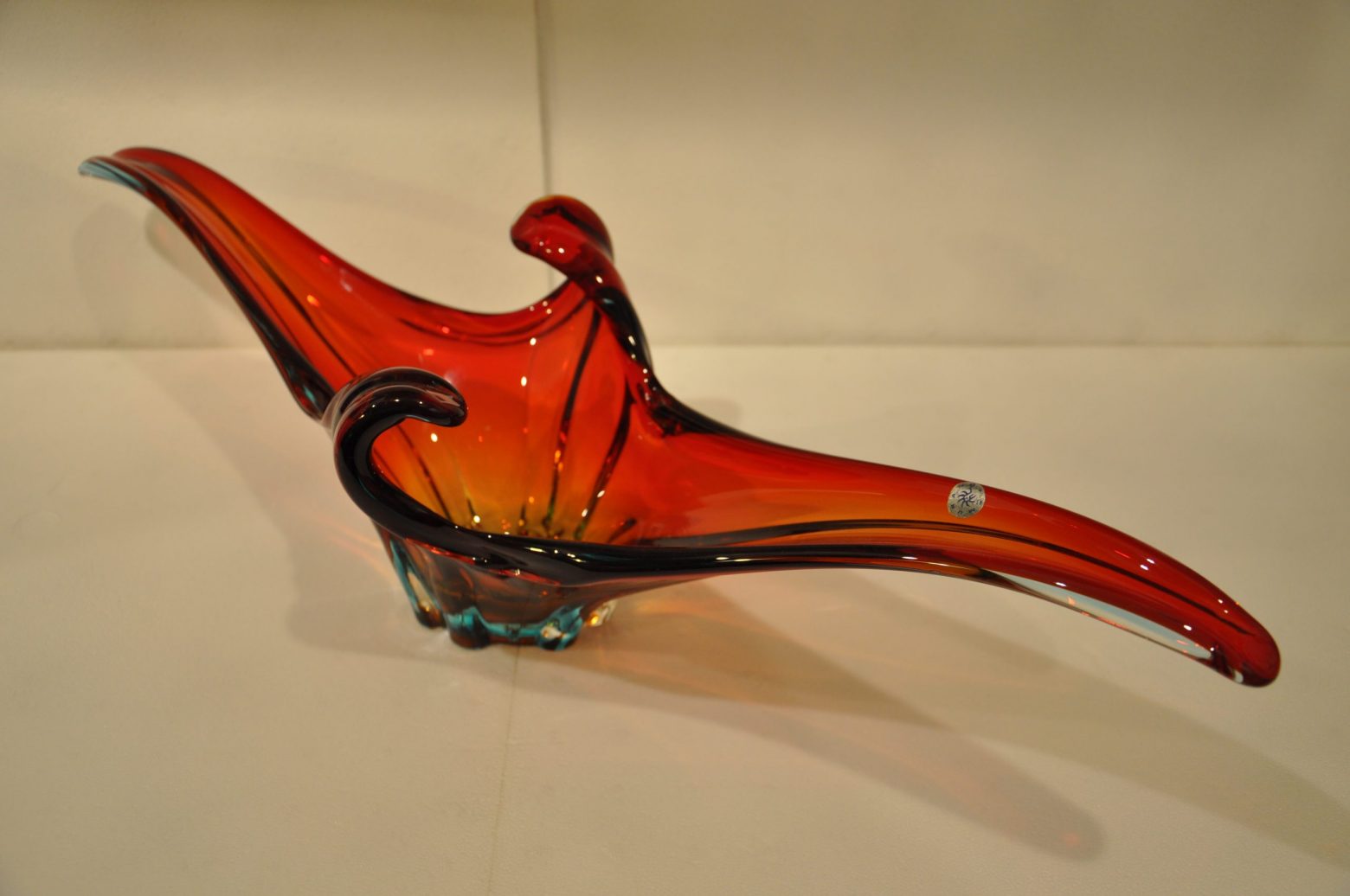 Son design organique et ses couleurs vives passe du rouge au bleu, en font une pièce unique et artistique.