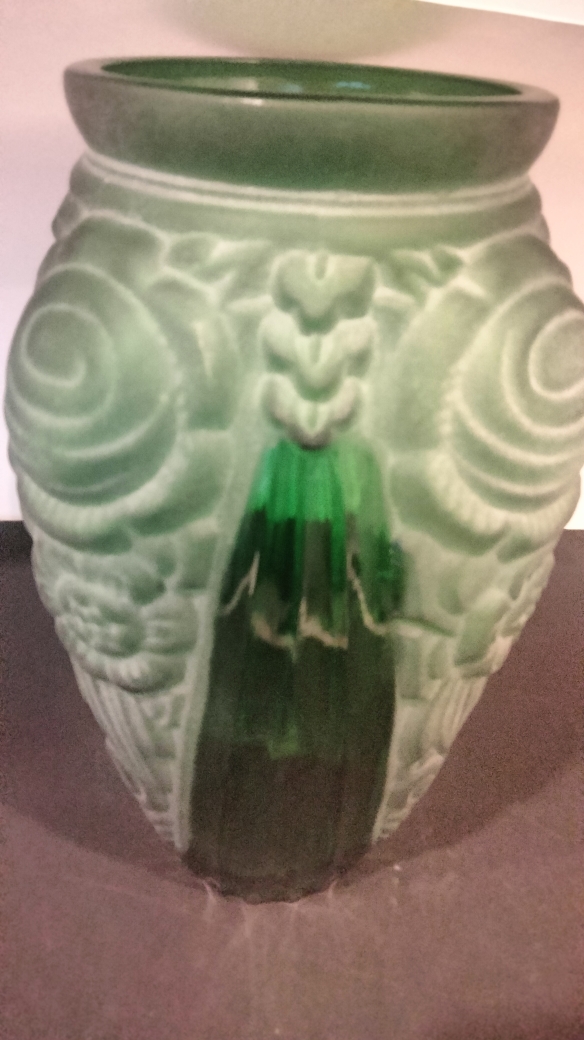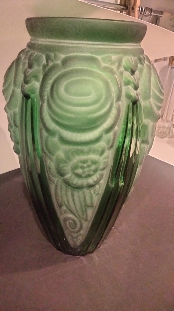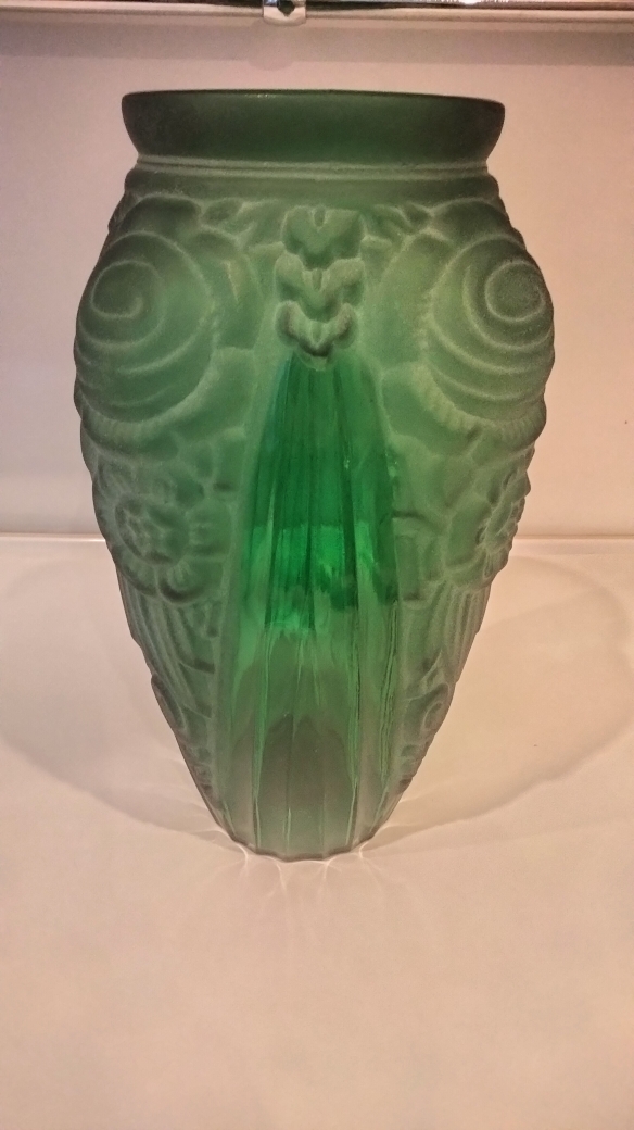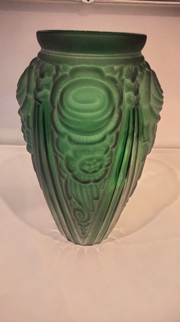 Vase Art Deco en Verre pressé et Moulé brillant et dépoli