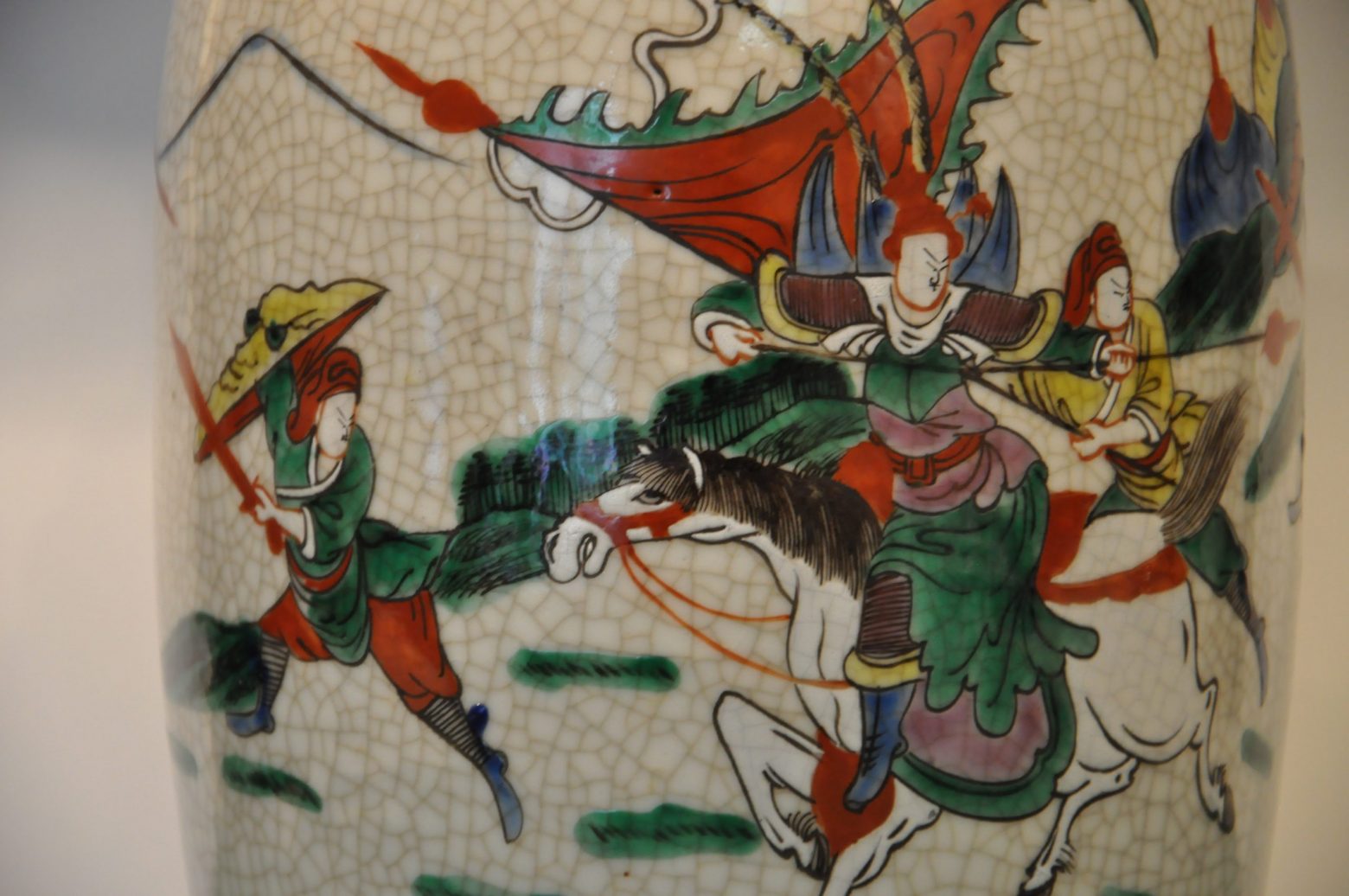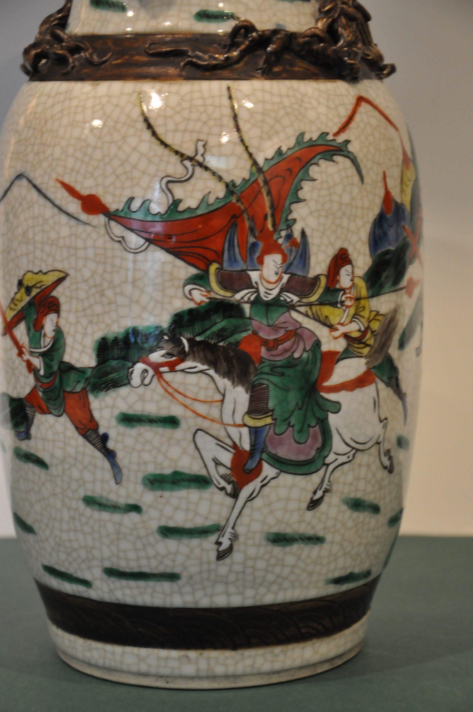 Le vase est richement décoré de scènes de bataille avec des cavaliers, des porte-étendards et des lanciers.