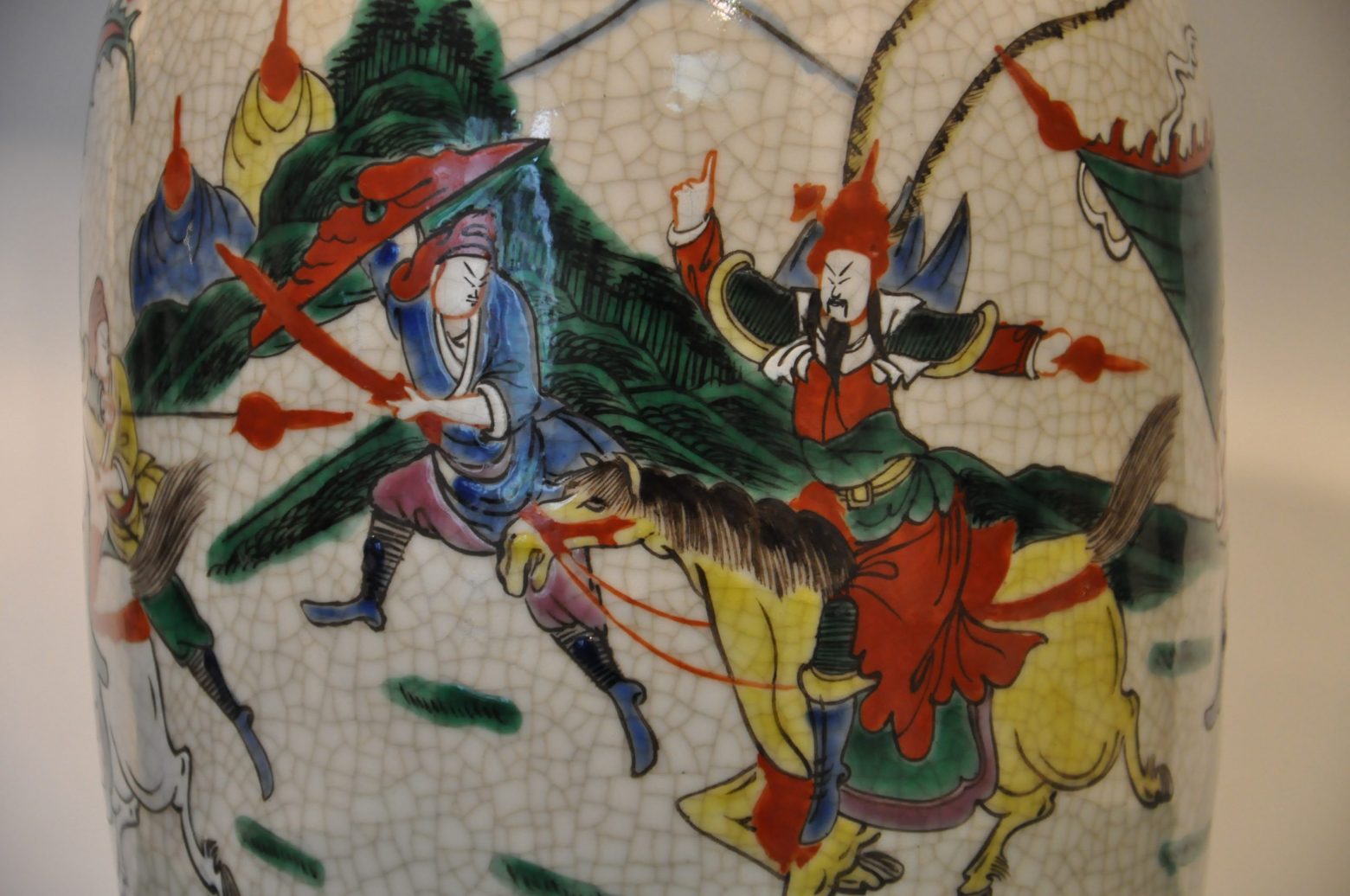 Vase balustre canton ancien en émail craquelé de la Famille Verte