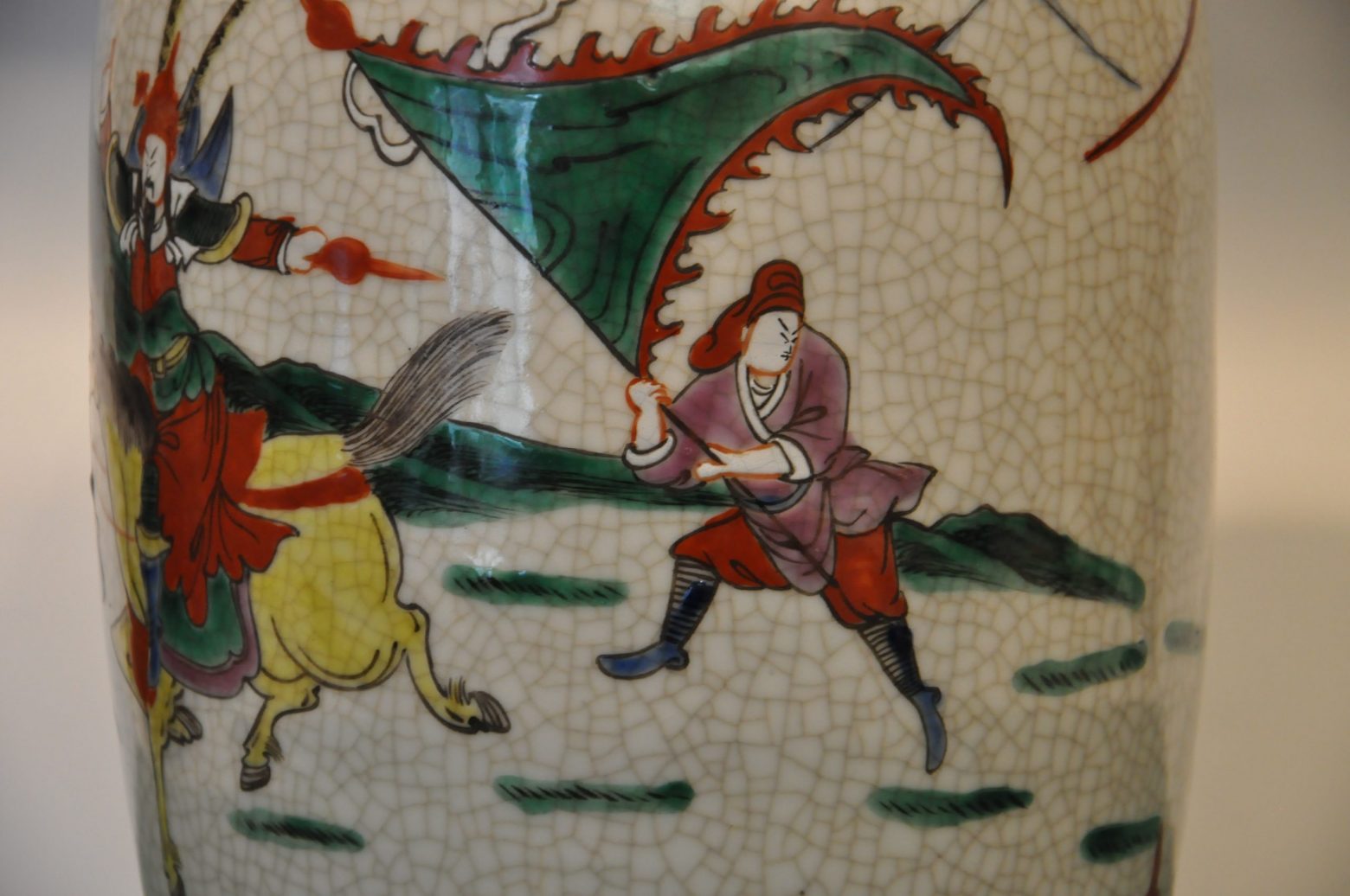 Magnifique vase balustre en émaillé craquelé peint à la main.