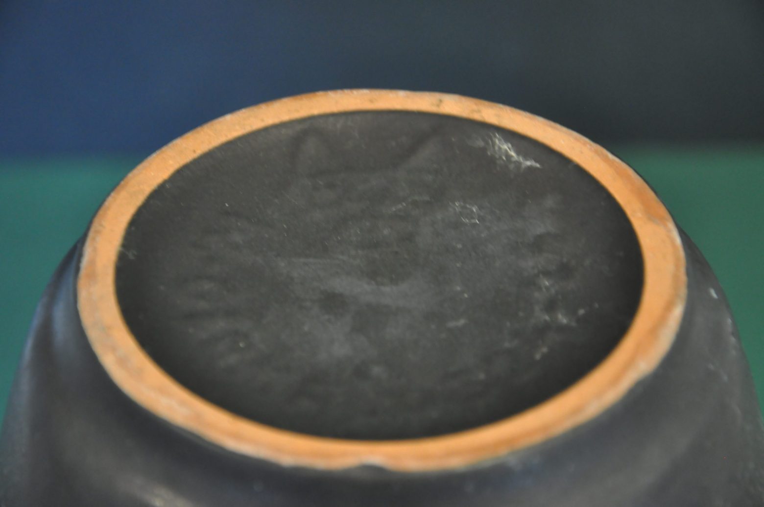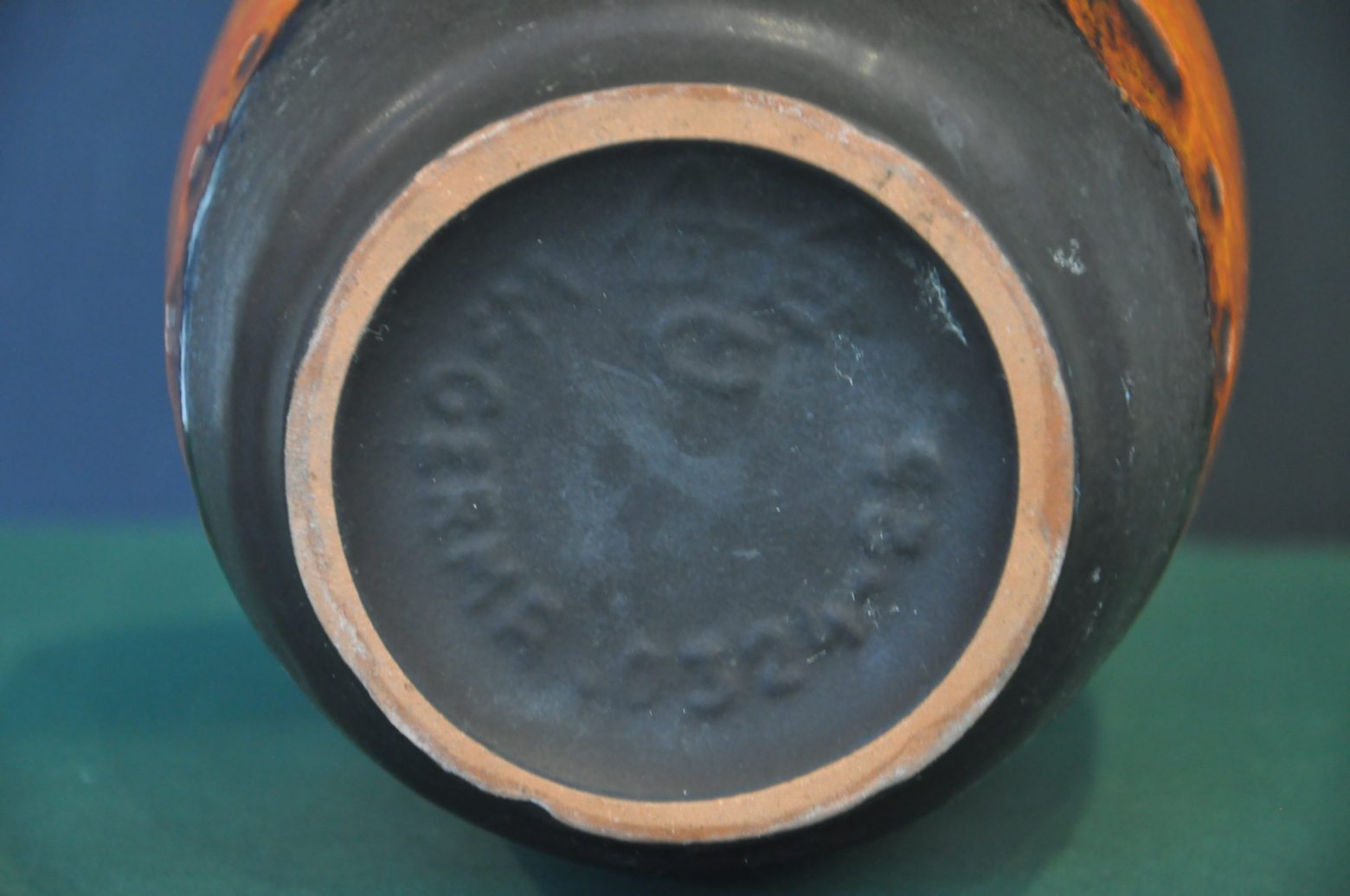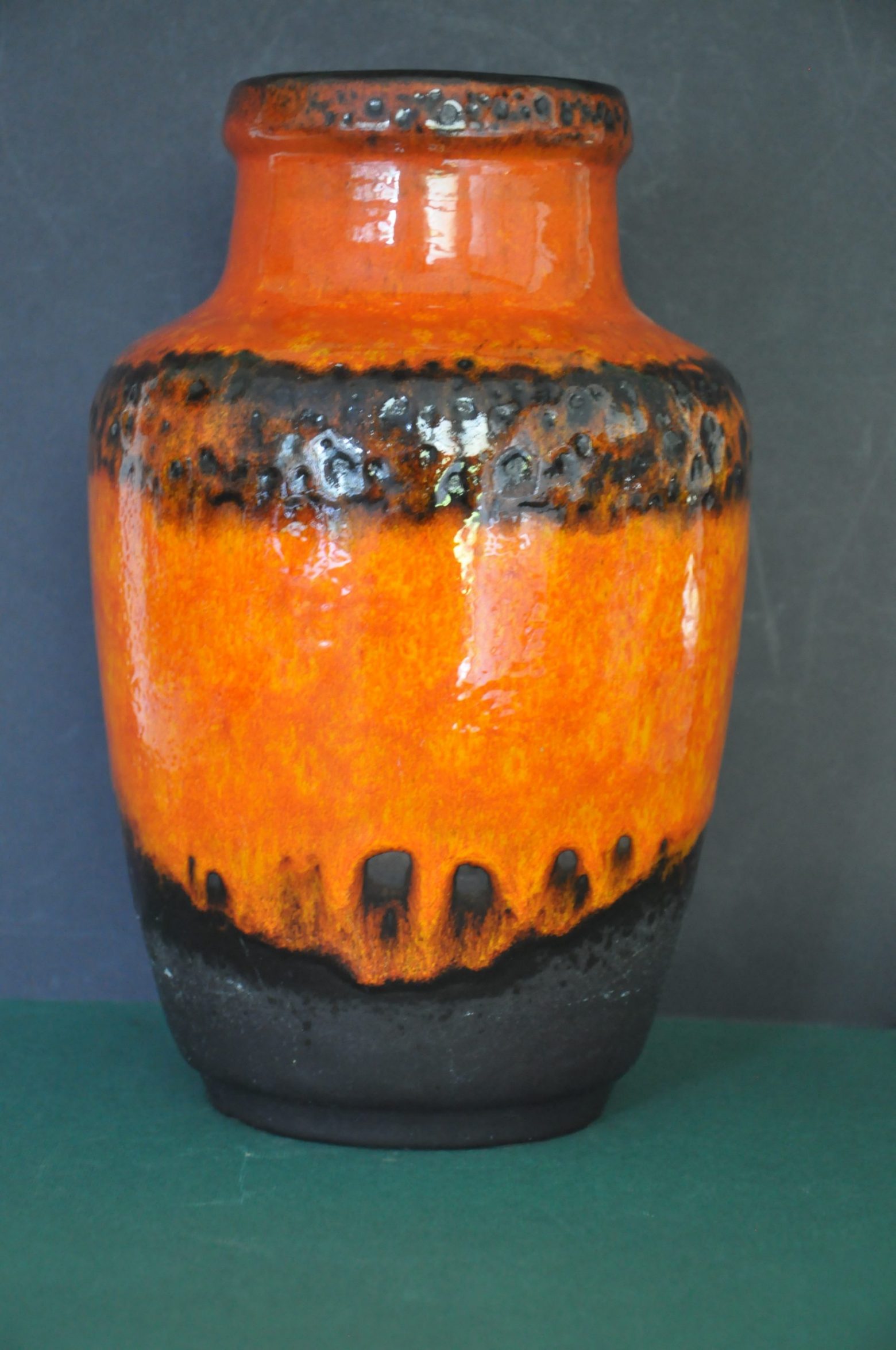 Un vase émaillé orange avec des motifs en lave grasse noire,