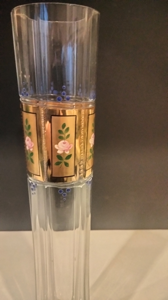 Le haut du vase est ceinturé d’une large bande décorative  richement dorée à l’or fin et ornée de médaillons fleuris.