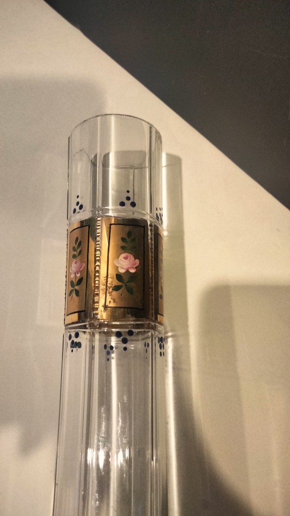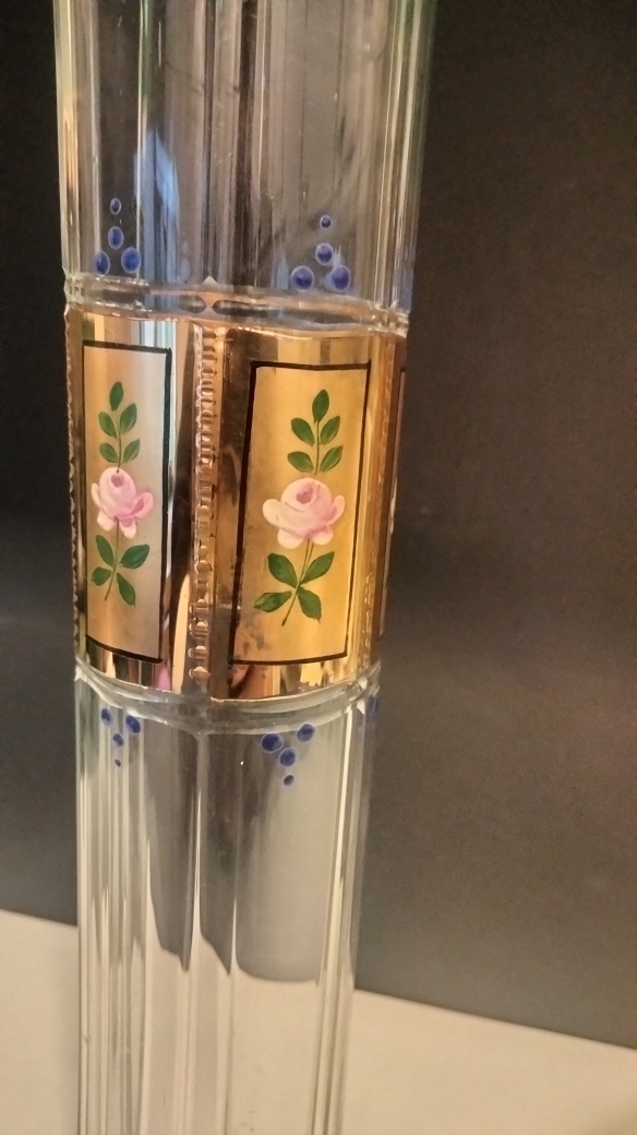 L’intégrité du verre est parfaite (pas d’éclat pas de fêlure). La dorure est très  légèrement atténuée  sur une côte, (voir la derniere photo).